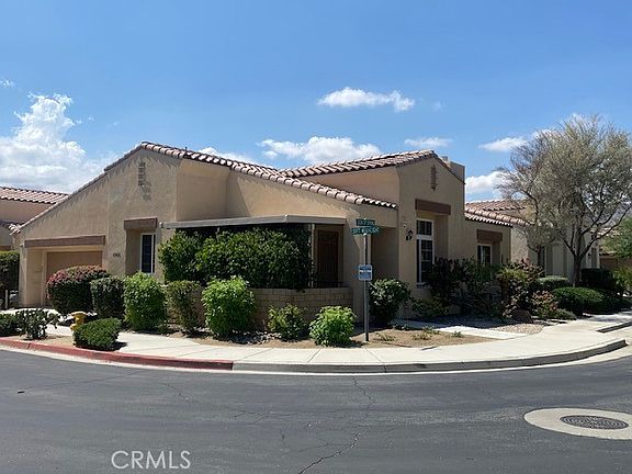 Welcome! This home is located in the Water Colors Community 55+ The home offers the open concept layout into the living/Dinning room area anchored by a cozy fireplace with high ceilings and ceiling fan. Window has wood like shutters. Kitchen has many cabinets and quarts counter top and back splash.. Appliance included are Refrigerator, stove and new microwave. Breakfast bar with extra cabinets for storage. The master bedroom can accommodate a king size bed. Their is a walk-in closet with shelves and Drawers also a built-in laundry cabinet. Walk in shower, Dual sink vanity recess lighting. Inside laundry washer and Dryer will remain. All bedrooms have ceiling fans. Garage has direct access to home. Floor tile throughout the home and and been freshly painted. Home also has a tankless water heater. The tranquil patio is the perfect setting to relax with morning coffee or entertain friends in the evening. Community offers a clubhouse/meeting room, pool and spa. Conveniently located near shopping center. This home falls under the City of La Quinta Housing Authority program. This program includes a $103,000 silent second trust deed with the La Quinta Housing Authority (Buyer must be approved for Total purchase price of $471,000 but you do not make payments on the silent second. So monthly payments are based on $368,000) Buyer must occupy the home as a primary residence--no rentals, no cash purchases, and no investors.