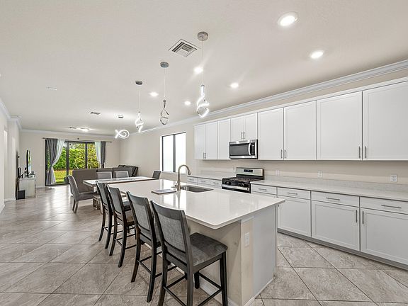 STUNNING 2023-built home in a family-friendly gated community of THE FIELDS. Conveniently located on a CUL-DE-SAC. This MUST-SEE newer construction home offers four bedrooms, two full bathrooms, two-car garage in a designed split floor plan. The open floor plan features a designer kitchen with a gas stove, Quartz countertops, oversized island with ample seating, stainless-steel appliances. Primary suite offers dual sinks, an XL walk-in shower, and a spacious walk-in closet. Elegant tile flooring flows seamlessly throughout the home. Ceiling fans enhance the home's contemporary appeal. Impact windows and doors provide security and peace of mind. Step outside to a covered patio for relaxing and with no rear neighbors. The Clubhouse offers incredible amenities. GREAT SCHOOLS.