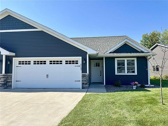 This quality 3 bedroom / 2 bathroom / 2 car attached twin home built by Wurzer Builders has been gently used and still feels like new. Some extras here that might actually make this better than new include an oversized patio with a $9K retractable awning, a walk-in tiled shower in the master bath, nice kitchen appliances included, granite countertops with island in kitchen, shelving in closets, plus extra cabinets in the garage and mechanical room. No stairs for easy one-level living here. A low $90 monthly association fee includes lawn mowing and snow removal. Vaulted ceiling in the main living area. Peaceful view from the back yard where there is a pond and wildlife visitors include deer, waterfowl and many birds! Walk across the street to access many acres of city owned land for more recreational enjoyment. Convenient neighborhood location that is close to all things Eau Claire has to offer. Clean and ready for you to move in!