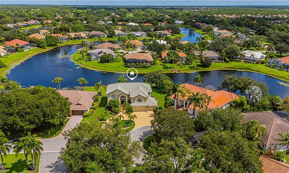 A RARELY AVAILABLE 2-story estate home in a highly sought after gated community in North Naples. This well-maintained home on a cul-de-sac has 4 bedrooms, loft, bonus room plus 4.5 baths. The 4008 square foot home has a 30-foot-high grand foyer and circle drive-way. The primary suite has a sitting room with two walk-in closets. Also, on the second floor are two more ensuites, loft, and large bonus room with a fireplace. The first floor has a bedroom and full bath, which makes a good home office or guest suite. Enjoy the sunset from your backyard oasis with a beautiful pool, spa and lush beautiful landscaping. Longshore Lake is a unique boating community where you can drive your friends and family around on your electric boat on the 88-acre lake (boat not included). Residents enjoy boating, fishing, kayaking, and sunset cruises. The community also offers a clubhouse with a restaurant, bar, outdoor dining, tennis courts with a full-time pro, pickleball, a fitness center, playground and more. Discover the unique lifestyle that you have always dreamed of in North Naples! FREE 12-MONTH HOME WARRANTY INCLUDED!