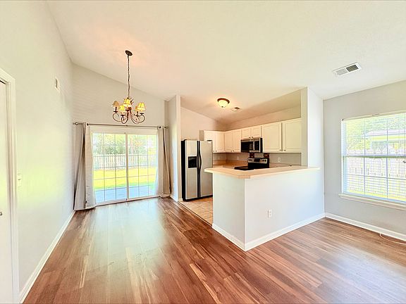 Welcome to this beautiful single-story home located in the sought-after Southgate community within Carolina Forest. This well-maintained 3-bedroom, 2-bathroom residence features an inviting open floor plan, luxury vinyl plank flooring throughout the main living areas, and vaulted ceilings that create a bright and airy atmosphere. The modern kitchen is equipped with stainless steel appliances, crisp white cabinetry, a convenient breakfast bar, and a cozy eat-in dining area perfect for everyday living and entertaining.