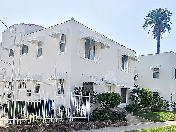 Beautiful, charming Spanish fourplex well-positioned between Mid-Wilshire / Miracle Mile / Hancock Park with close proximity to Downtown L.A., Beverly Grove, Hollywood, and the West Side of Los Angeles. This corner property is has a lot area of 8,420 square feet, one of the largest in the areas. The property contains three separate buildings, two buildings contain with two units each and 4 garage spaces. It consists of two 2 bedroom 2 bath units with a den and two, large, 1 bedroom 1 bath units. 3 of the 4 units have been renovated with one long term tenant. 2BR/2BA + Den units has been fully renovated. One 1BR / 1BA unit was renovated by the previous owner. Charging outlet for an electric vehicle is available for the upstairs unit. One of the two bedroom units is owner occupied utilizing HCIDLA owner occupancy rules. Open house is at a 2BR unit located at 1104 South Hudson Ave. Inspection of all units shall occurs at the time of inspection with an accepted offer. Qualified buyers only. 2% commission to buyers agent at the close of escrow.