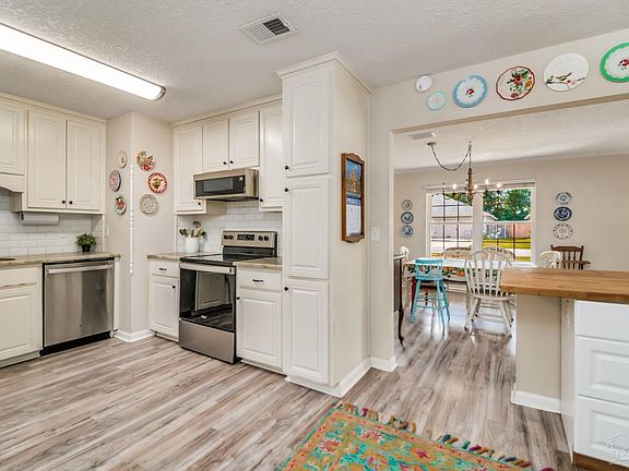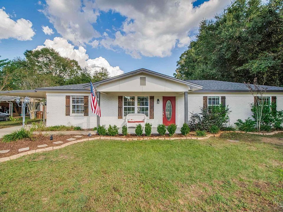 Step inside this beautiful 3-bedroom, 2-bath home on a huge HALF ACRE LOT and enjoy a light-filled living and dining area perfect for everyday living or entertaining. The kitchen boasts BEAUTIFUL GRANITE countertops, stainless steel appliances, and direct access to the Florida room—your favorite spot for morning coffee or quiet fall evenings. This heated and cooled space adds year-round comfort and charm! Major systems—ROOF, HVAC, and WATER HEATER—all new in 2022, giving peace of mind for years to come. Interior and exterior paint, plus flooring, were also updated that year for a move-in-ready feel. Outside, enjoy your fully fenced backyard with a covered porch area, ample green space for play or gatherings, and fruit-bearing trees including apple, peach, and banana, along with blueberry bushes. TWO SHEDS (one brand new 2024) with generous shelving offers the perfect solution for extra storage or projects. Located right around the corner from all the shopping, dining, and top-rated schools Pace has to offer—this property combines modern updates, outdoor living, and small-town charm in one perfect package!