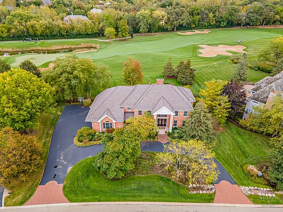 From the moment you Enter the gated community and follow the most gracious treelined drive and arrive at one of the most coveted addresses in Long Grove, you know you have arrived home. Welcome to a home that brings you a unique value of balanced living, sophistication & refinement, nestled in the heart of the Exclusive 24/7 guard-gated Royal Melbourne Community. This home is set on the 11th hole on one of the best premium lots in the neighborhood, far away from road noise or golf balls. It takes in sweeping views of the golf course and it majestic grounds. This home blends timeless architecture with custom craftmanship and modern amenities. The sweeping circular drive and stately porte-cochere frame the dramatic arrival while mature trees and beautiful stonework set the tone for understated elegance. The all-brick facade, with brilliant white stone accents, is enriched with tall windows, refined trim, and the luxury you would expect. Step into the dramatic two-story foyer into a sanctuary of light! Soaring ceilings, gleaming hardwood floors, and custom millwork define each space. There are both a formal living room and dining room, both anchored by picture windows and designer lighting, and provide settings for refined gatherings or casual conversation. The study is amazing! French doors open it to the amazing outdoor patio space so you can bring your work outside! If you do not need this office space, it can be a 5th bedroom or be made into an in-law suite with a full bath right next to it! The heart of the home is the gourmet Chefs kitchen featuring top of the line stainless steel appliances (Viking), a grand center Mahogany island, custom cabinetry, and stunning golf course views and amazing natural light! Adjacent to the kitchen in this open floor plan is the Vaulted family room with an architectural focal point fireplace and floor to ceiling windows that invite the indoor-outdoor flow to the amazing terrace! Additional first floor amenities include a butler's pantry, wet bar, mudroom with sink and built in cabinetry, and a half bath. Upstairs, every bedroom is a sanctuary. The primary suite is especially sumptuous, featuring tray ceilings, a luxurious spa-style bath with dual vanities, soaking tub, glass-enclosed shower, & an impressive dressing area with dual walk-in closets. It also features an additional room currently being used as an office that could be a workout room, nursery, or additional closet. It also features its own porch that serves as a private veranda overlooking the backyard, patio, and golf course! Additional en-suite bedrooms offer well-scaled comfort and design continuity throughout. The finished lower level elevates this home's entertaining credentials. With a fabulous recreation room, fireplace, wet bar, fitness center, sauna, this floor is constructed for fun and functionality. Every inch is finished with high-end finishes and thoughtful design. Outdoors, the property is built for luxury living at its best: extensive patios, an alfresco kitchen or grilling area, secluded seating zones, and fire-featured spaces offer dynamic spots for gatherings or quiet repose. All set against landscaped grounds and panoramic vistas that takes in the most stunning of sunrises! You will entirely enjoy the Fabulous Screen porch designed from the James Bond film "Casino Royale". This room has stunning masonry and arched windows, and its own fireplace and windows to make it last all year long! *Very Important to note 1 YR OLD DaVinci Roof w/50 YR warranty* This home offers not only beauty but also educational excellence. This home attends a trifecta of fabulous schools in Country Meadows, Woodlawn, & Stevenson High School! Residents benefit from Royal Melbourne's tranquil walking paths, Private Park, proximity to Country Club amenities (Golf, tennis, Paddle, Pickle & Pool) and a sense of exclusivity and prestige that few addresses can match. This is the opportunity you have been waiting for! Love where you live!