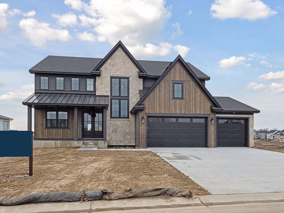 Stonegate Builders proudly presents the FREMONT floorplan. Approximate completion date of April 2026! Featuring over 5,000 square feet of exceptional design, perfect for family living. Earthy design elements enhance the open concept main level, featuring a dining room, a gourmet kitchen with oversized island and prep kitchen, a vaulted sunroom, and great room with fireplace. The mudroom, powder bath, and pocket office are conveniently located off the prep kitchen. The upper level includes a luxurious owner's suite with soaking tub, tile shower, and walk-in closet. Bedrooms 2 & 3 share a Jack & Jill bath, while the 4th bedroom boasts an ensuite bath, ideal for guests. A spacious loft completes the upper level. The lower level is designed for entertainment, with a rec room with fireplace, game room, wet bar, exercise room, guest bedroom and bath, and fully equipped golf simulator room!