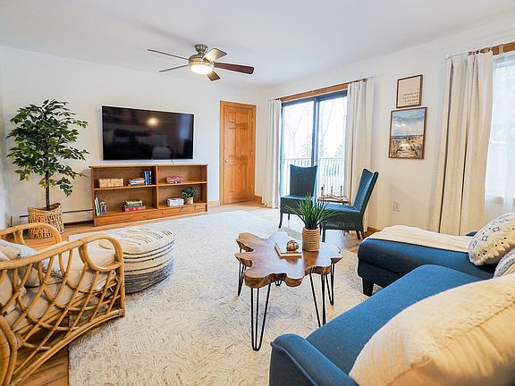 Enjoy breath-taking views of Lake Michigan from the large living room windows & walk-out deck. This 2-bed condo features 2 full baths & hardwood floors throughout. Open concept living room, dining room & kitchen. Large sliding glass doors off dining room lead to upper deck with views of the lake. Updated kitchen w/stainless steel appliances & breakfast bar. Wall A/C units & private stackable laundry in hallway closet. Resort amenities include shared outdoor pool & 320ft deeded beach frontage with golf cart path. Located only 30 min to South Haven & 2 Hours from Chicago. Assoc dues include heat, common laundry area, pool, yard area, snow removal, water, and sewer. This condo is great for year-round living, a vacation spot, or short-term rental. Professionally decorated and fully furnished.