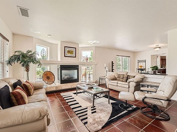 This large home has plenty of space for everyone. Upon entering you are greeted with an intimate living room with a cozy fireplace and ample seating for you and your guests or just separate living spaces. The spacious great room consisting of the kitchen, dining, and family room will be a popular gathering place during parties or for everyday living. The kitchen has granite counters, an abundance of cabinets, a double oven, and again plenty of space. The upstairs has a master suite with two separate vanities and two separate closets. This home is one of the few homes in The Broadlands with an additional en-suite bedroom. The well-cared-for landscaping has been professionally maintained year after year. The backyard has a retractable awning to enjoy during the heat of the day and a firepit to stay warm in the evening or on chilly winter days. The location could not be better. Far enough from the busy traffic and bus stops but close enough to be within walking distance. The Broadlands Golf Course is nearby to hit the ball around but not close enough to get hit with a ball. Arguably, the best location in the subdivision as it is quiet, convenient, and a great place to raise a family. This sought-after neighborhood is close to the popular Coyote Ridge Elementary School, open spaces with trails, a community pool, and a clubhouse. And there is more...the two furnaces and 2 air conditioners were replaced in 2022 and the water heater was replaced in 2021.