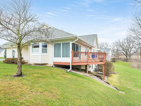 Immaculate walkout ranch condo, move in ready! Newer furnace, C/A, & water heater. This lovely home features over 2200 sq ft of living space. If you like to entertain, you will love the open feel between the kitchen and great room. The spacious kitchen includes all appliances, great counter/cabinet space, and snack bar. Large dining area conveniently located off of kitchen. Great room features cathedral ceiling, newer vinyl plank flooring, and easy access to 3 seasons room. Main floor primary suite is handicap accessible and offers large walk in closet and full bath. The 2nd bedroom and guest bath are good size. Main floor laundry. The lower walkout level features rec room with fireplace, 3rd bedroom/3rd full bath, exercise room, and good storage. 2 car garage features ramp entrance.