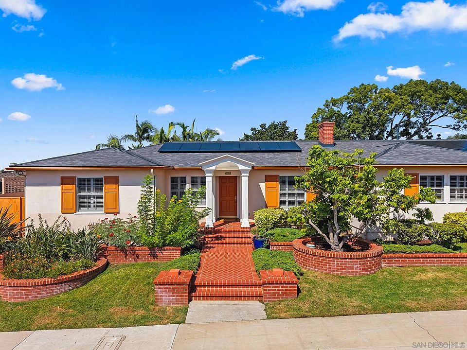 This distinguished single-story Talmadge estate offers 3,047 sq. ft. with 5BD/4BA on a 10,600 sq. ft. lot. Built in 1951 & redesigned by William Hughes, who designed The Lodge at Torrey Pines. The new chef's kitchen features a 48” Wolf range, dual ovens, steam oven, Sub-Zero refrigerator, wine fridge, custom cabinetry & Blue Lava quartzite counters. Formal & casual living areas open to patios & gardens. Private primary wing, guest suite w/exterior entry, 3-car garage, citrus trees, new roof with solar panels w/Tesla battery. This distinguished single-story Talmadge estate, originally built in 1951 & redesigned in 1991 by local architect William Hughes, who designed The Lodge at Torrey Pines, offers 3,047 sq. ft. with 5BD/4BA on a 10,600 sq. ft. lot. At its heart lies a new chef’s kitchen appointed with a 48” Wolf range with 6 burners, dual ovens, steam oven, Sub-Zero refrigerator, wine fridge, custom two-tone cabinetry & striking Blue Lava quartzite counters. Expansive formal & casual living areas flow to landscaped patios & gardens, enhanced by a whole-home speaker system. The primary suite enjoys its own private wing overlooking the gardens, while a secondary bedroom opens to a covered deck, & a guest suite with exterior entry offers accommodations for visitors or multigenerational living. A 3-car garage provides generous storage & workspace, while the grounds feature citrus trees & mature landscaping. Recent upgrades include a new 30-year roof, solar panels with Tesla Powerwall battery, reinforced foundation & more!