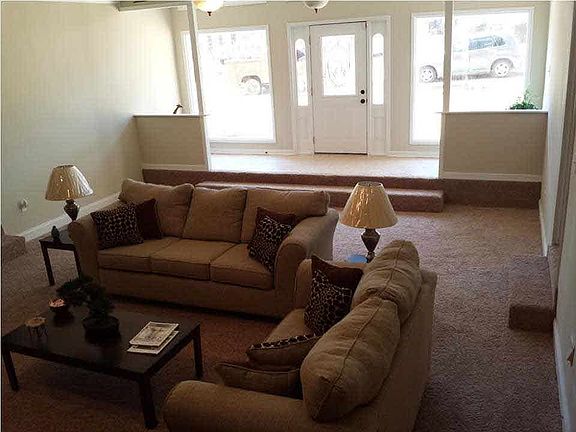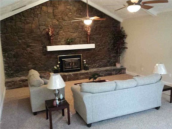 Grandeur abounds in this unparalleled 3br / 2ba, 1854 sqft executive home. This remarkable home has an over-sized sunken Great Room with dual remote controlled ceiling fans, large plate glass windows, and wood burning fireplace. The Kitchen features Cappuccino Linear Porcelain Tile counter-top with Cappuccino Mosaic glass back-splash. Stainless Steel Stove and Dishwasher. Great attention was given to the Master bathroom with Black granite counter-top, ceramic tile tub surround with mosaic glass accents, and custom lighting. Each guest bedroom has a separate dressing room with extra large closet space. The guest bedroom sinks feature Stratos linear porcelain tile with quartzite mosaic back-splash and ceramic tile tub surround with glass mosaic accents in the guest bath. Your home features: Architectural shingles, new Frieze carpet, new ceramic tile throughout, new lighting, and plumbing fixtures.