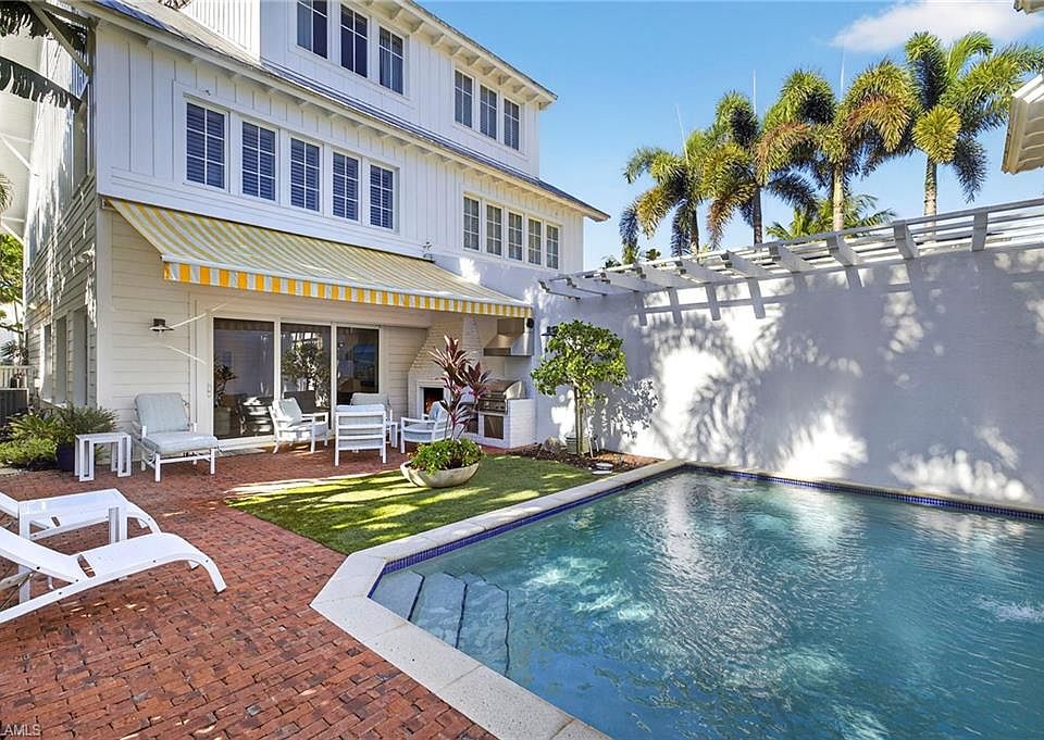 30 Day Minimum. Available November and/or December 2025 at $22,000 per month. Available January or April 2026 at $30,000 per month. Newly Available! Escape to this stunning beach villa in the heart of Olde Naples just 4 blocks from the Gulf and 2 blocks from the world-class dining, boutique shops, and art galleries of 5th Avenue South. The perfect winter retreat awaits you! The main level boasts a gourmet chef's kitchen. Beyond the dining area, a spacious living room opens seamlessly through disappearing glass doors to a private outdoor oasis featuring a heated pool, comfortable seating, a gas grill, and a cozy fireplace. Upstairs, the primary suite offers a spa-like bath with double vanities and an oversized walk-in shower, along with a private sitting area complete with a desk and large television. A conveniently located laundry room is just steps away. The third floor includes two additional bedrooms, each with its own private en-suite bathroom perfect for family, friends, and guests. For added convenience, the home also includes an air-conditioned one-car garage, a fully finished storage room, and a covered carport. Your dream Naples vacation starts here!