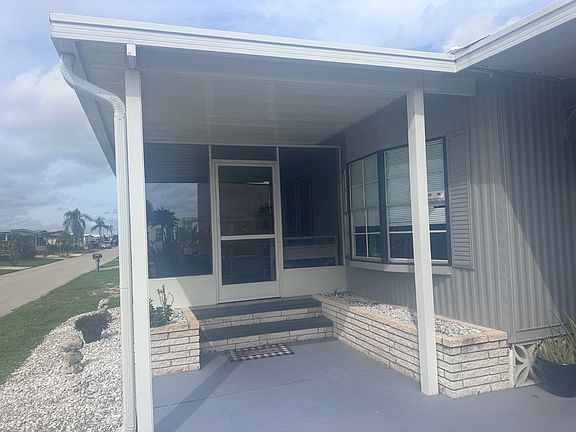 This cozy home comes mostly furnished.The lovely pass-through kitchen comes with stainless steel appliances and it has an island with a breakfast bar.The kitchens has epoxy countertops, farmhouse sink and a new faucet.The roof is in great condition and the AC is four years old. It has waterproof laminate flooring throughout & a tankless water heater. Both bathrooms have walk-in shower and new cabinets. There are ceiling fans in both bedrooms, living room & the lanai. The washer/dryer is in the shed under the carport that holds two vehicles. It's in a great neighborhood near all the amenities. It has three swimming pools, two gyms, 3 club houses and so much more! Thirty minutes from Ft Myers Beach and Venice Beach. Also minutes from shopping, restaurants and medical facilities. Call today for more information. This beauty will not last long!