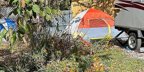 berry bushes, stone raised bed gardens. Wonder horse pasture area , wooded walking trails , multitudes of perennial flower gardens line the campsites & walking trail.