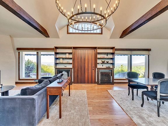 Welcome to 477 East Mountain Road – Peterborough’s Crown Jewel! Perched on prestigious East Mountain Road, the magnificent “Knights Hill” estate—once the historic home of conservationist and benefactor Josie Kane—has been meticulously restored to its former grandeur while enhanced with modern luxuries. Encompassing 6/7 bedrooms, 5 baths, and approximately 5,000 square feet of sophisticated living space, the residence is surrounded by hundreds of acres of meadows, woodlands, and conserved land, ensuring unrivaled privacy and sweeping ridge views across the Monadnock region. A long, scenic private drive leads to a stately courtyard and guest cottage. Through a grand mahogany doorway, the soaring great room impresses with cathedral ceilings, hardwood floors, and a commanding stucco fireplace. The chef’s kitchen with granite island and octagonal breakfast alcove serves as the heart of the home, while the owner’s wing offers dual elegant baths and a refined private retreat. Guests are graciously accommodated in a standalone cottage or in the carriage house apartment with its own kitchen, bath, and private entry—perfect for in-laws, staff, or extended stays. Outdoor living features expansive bluestone terraces, manicured gardens, and open columned porches framing some of New England’s finest mountain views. Just minutes from downtown Peterborough and within easy reach of Boston, this extraordinary estate is a rare legacy offering that combines history, seclusion, and timel