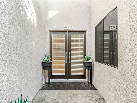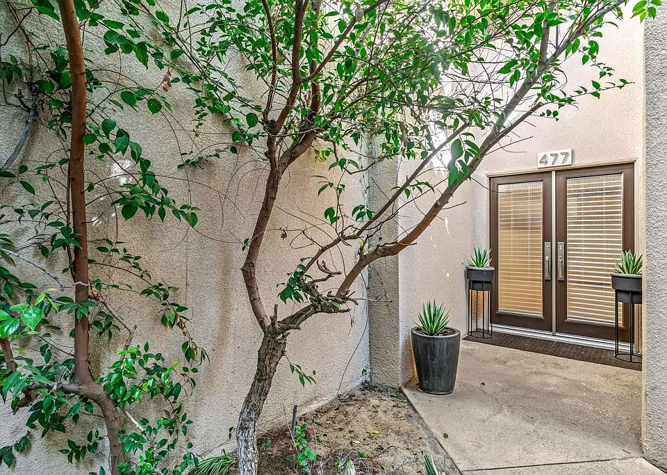 Discover refined living at 477 Village Square East, a spacious contemporary 3-bedroom, 3-bathroom condo nestled in the exclusive gated Village Racquet Club. Spanning 1,923 square feet, this home offers a blend of elegance and modern conveniences. Sited on an interior corner lot, this residence provides a peaceful retreat away from traffic, while showcasing stunning mountain views and steps away from community amenities. The living room features a wet bar, cozy fireplace, and wonderful private balcony creating an ideal spot for enjoying morning coffee or relaxing at sunset. The kitchen, updated with sleek stainless appliances, cabinetry, and a newer refrigerator, caters to both the novice cook and the culinary enthusiast. A very private second patio is off the kitchen. The primary suite is a sanctuary with a recently renovated double-vanity bathroom, walk-in closet, and versatile sitting room/office with stunning views. A convenient laundry chute leads from the primary closet to the spacious two-car garage with laundry area and seven built-in, lockable closets, two lined with cedar. Two additional bedrooms and baths provide plenty of room for guests. Enjoy the community's recently updated pool and hot tub or take advantage of the well-equipped gym and tennis courts. Embrace the Palm Springs lifestyle in this home that combines modern elegance with resort-style amenities, offering both a peaceful retreat and a vibrant hub for activity in a location that combines functionality with flair.