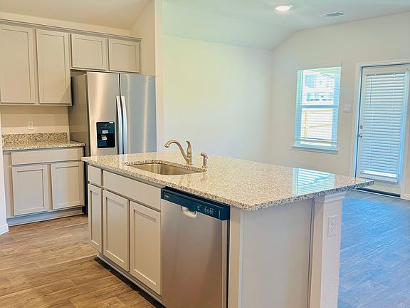 Be the first to rent this beautiful, brand-new home in Kyle! Nestled on a premium lot backing up to a peaceful green space, this property features a spacious backyard, four bedrooms, two bathrooms, and a two-car garage. The open-concept layout includes a large kitchen island, ideal for entertaining. The master suite offers a double vanity and a walk-in closet. Included with the rental are a refrigerator, washer, dryer, and smart home technology for your convenience. (washer and dryer not shown in photos). This vibrant community provides excellent amenities such as swimming pools, parks, and walking trails. Located just 20 miles south of Austin, Kyle offers easy access via I-35 for commuting, entertainment, and leisure. Nearby attractions include summer river floats, the San Marcos Outlets, EVO entertainment complex, and more. Shopping is a breeze with HEB, Walmart, and Costco just 10-15 minutes away. Available for showings now, with move-in ready by October 25, 2024! 12 month lease term or more must complete an application screening