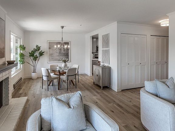 A fabulous downtown lifestyle awaits! With light-filled interiors and fresh updates, this top-floor condo offers the unique opportunity to move right in and immediately enjoy all of the wonderful shops and restaurants right outside your front door. The home itself boasts fabulous open-concept living spaces primed for entertaining, a large balcony for alfresco living, and spacious bedrooms. A welcoming foyer introduces wide luxury vinyl plank floors that extend throughout, and the kitchen has painted wood cabinetry, tile countertops and full-height backsplashes, and stainless steel appliances. The dining area is framed by tall windows overlooking the pool and sits fully open to the living room with a fireplace and sliding glass doors to the balcony. The spacious primary suite enjoys a walk-through closet with mirrored doors and an en suite bath, while the generously-sized second bedroom features abundant natural light and a large closet. Community amenities include landscaped pathways and a nearby pool with patio seating. An incredible opportunity to live in a highly sought-after neighborhood just moments from vibrant downtown amenities!