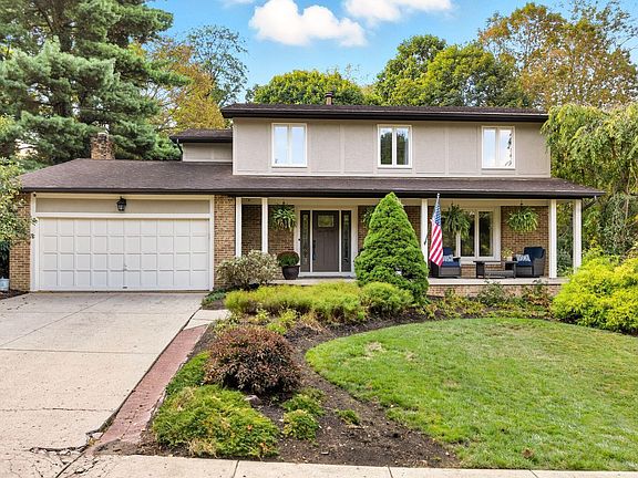 A stunning private wooded lot that includes a ravine with a stream, patio, gazebo, & deck to enjoy your private backyard. The well maintained home features a full covered front porch perfect for enjoying nice days, a newer updated gourmet kitchen of your dreams with granite counter tops, large center island with over hang for extra seating, tons of storage, and updated appliances including a BlueStar 48'' stove with 8 burners. The large family room has built in cabinets, large bay window and a cozy fireplace with brick hearth. A spacious living room and a half bath. Flooring throughout main level is luxury wood LVT. The second story features 4 spacious bedrooms all with ceiling fans. A second full bath. A lovely primary suite with a private bath that features a ceramic tile shower and walk in closet. The second floor is all engineered hardwood floors. A finished basement that is a dream to entertain in that features a custom bar and kitchen area and plenty of room to watch the big game. A LL utility room and still room for your storage needs. Plus a private workshop room and under the staircase storage. All of this is nestle on a quiet cul da sac in Worthington Schools. All you need to do it move in.