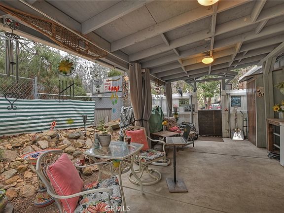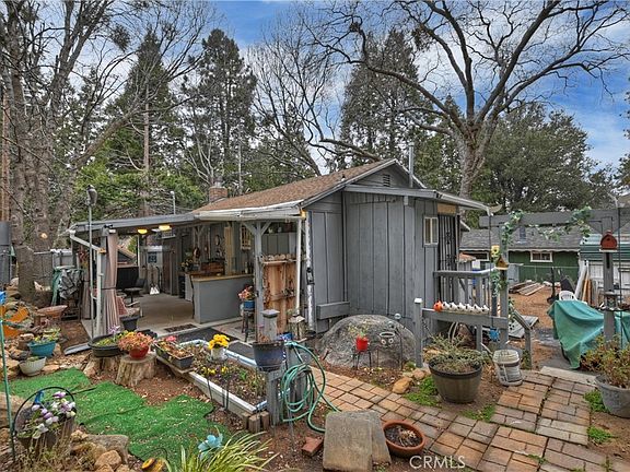This darling cabin is a delightful blend of old-world charm and modern amenities. The living room is quite large and has real knotty pine paneling and a brick fireplace. It's been equipped with a mini-split air conditioner and heater and neutral carpet. The open concept kitchen has been completely remodeled. It has grey cabinets, a breakfast bar, white appliances, including a gas stove. The kitchen complements the living room well. The bedroom has its own gas heater and a walk-in closet. The bath has been beautifully remodeled and includes a rainwater style shower head. The home also has a powder room/laundry area. Out the back door is a covered patio perfect to enjoy the mountain regardless of the weather. It has kitchenette with a bar and bar-be-que area plus a sitting area. The yard has been split into two. One side has a raised bed garden, doggie area and even a chicken coop. The other has a working shed and a fenced area for project. All the work is done and all the appliances are included! This one is ready for you come and enjoy the mountain. Tax rolls show this is a one bathroom home but it's one and a half bath.