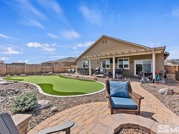 Stunning single level home in the sought after Northridge community. This 3 bedroom, 2 bath home offers thousands in upgrades, which include a kitchen that is a chefs dream, featuring an oversized quartz island, quartz countertops, custom back splah, upgraded cabinetry throughout, luxury vinyl plank flooring, stone surrounded fireplace, and an enlarged primary shower. A 14'x28' custom patio cover welcomes you to the quiet backyard sanctuary. Entertain family and friends with your built in outdoor, kitchen, relax by the firepit with sounds of the custom water fall or participate in fun putting competitions. This home is a must see. Welcome Home!