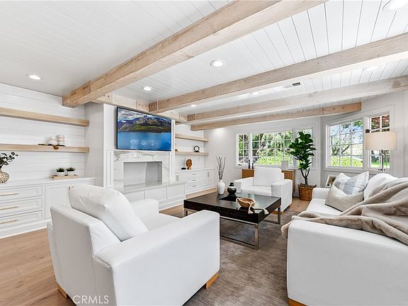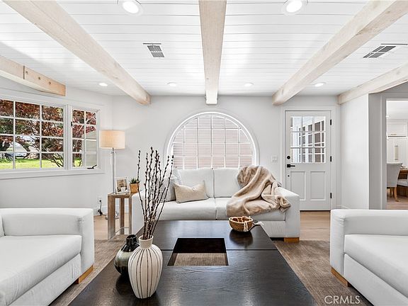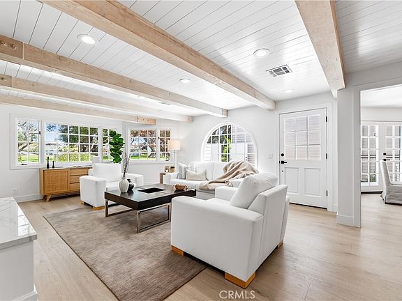 Private Showings Available. Located in the beautiful quiet community of Bridgeport this custom built home is absolutely stunning. The home features 4 bedrooms and 2.5 bathrooms with an office on the main level. This home is a coastal oasis with a custom kitchen which features paneled appliances, 48 inch Ilve white and polished brass range, white oak china cabinet, pantry, dry bar with floating shelves and coastal lighting. The living room is beautifully designed with a paneled fireplace, white oak floating shelves and shiplap to finish it out. The home features sky lights throughout the downstairs giving the home plenty of natural light. The primary bedroom is a private retreat with its own patio to enjoy the view. The 16 ft ceiling has exposed wood beams and with the circular design is a stunning accent to the home. The primary bathroom has polished porcelain tile with a floating,large walking shower as well as a custom built double vanity. The bedroom has two separate closet areas including a walk in closet allowing for ample storage within the primary. The second level laundry room has corner to corner cabinetry perfect for extra storage. The home has a 3 car garage which is perfect for the beach community as many members take their golf carts to the 3 minute ride to the sand. With luxury shopping and restaurants just minutes away at 2nd and PCH as well as the beach this location is absolutely perfect for your coastal experience.