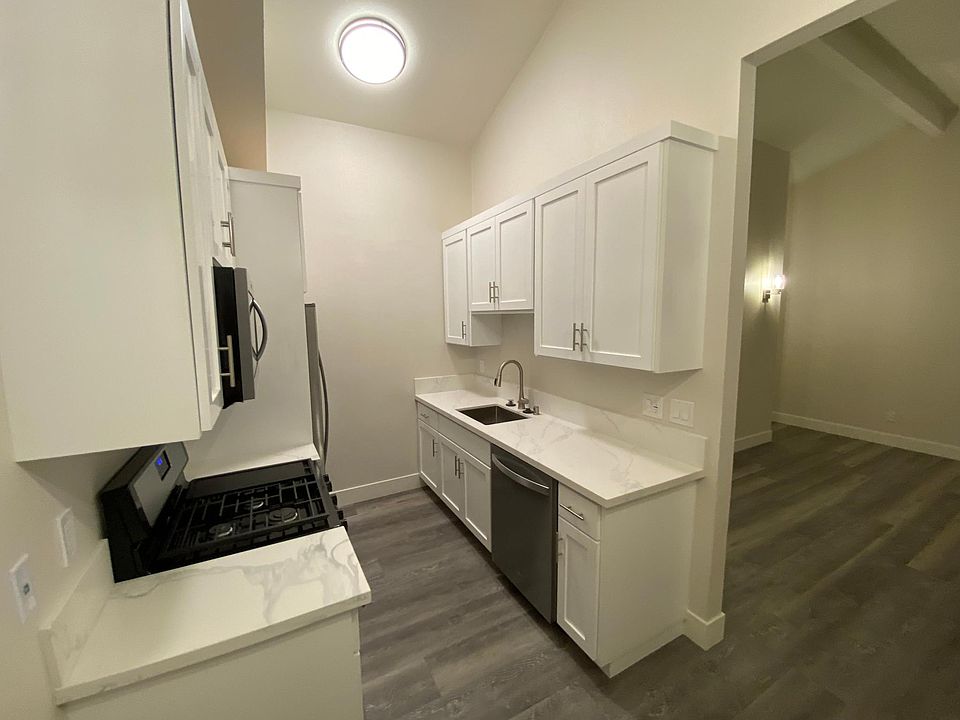 Completely Remodeled 1 Bedroom 1 Bath Upper Unit. Located near the Traffic Circle, PCH and CSULB Beachside Village, this Gorgeous Upstairs Apartment is located in one of the quietest areas in Long Beach. Not only is it near all the Shops and Restaurants, this 1 Bedroom 1 Bathroom home has all New LVT Hardwood Flooring/Tile, Fresh Paint and Custom Moulding throughout. This is a very light, bright and airy home and includes Brand New Dual Pane Energy Efficient Windows with new blinds, Vaulted Ceilings and a Large Balcony. The kitchen has all New Stainless Steel Appliances which include a Gas Range, Refrigerator, Dishwasher. With Brand New Quartz Countertops throughout, the Kitchen opens to a large living room. The bedroom has a large closet with ample storage and built in cabinet in hallway. A 1 car garage is available for $100.00/mo. Located at 4770 E Malta Street, Long Beach, CA 90815. Owner Pays Water. Tenant Pays all other utilities. No Pets, Non-Smoking
