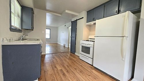 Updated eat-in kitchenBarn-style doorUpdated cabinets and counters