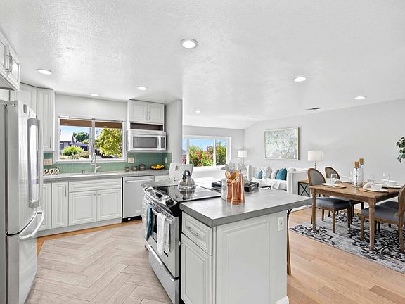 Move in ready! Do not miss this spectacular home with breathtaking views! Located up in the hills of the desirable Riverview neighborhood with a great view of the Bay Area mountains and Downtown San Jose. This home is renovated with a separate living room, family room, and an eat in kitchen with a modern concrete slab island. Includes updated appliances. Lovely custom countertops with a beautiful glass tile backsplash. Fresh interior paint, AC, central forced heat, and a cozy fireplace. Newer smart garage door and motor. New front door with keyless push pin pad. Some Renewal by Anderson windows, Nest thermostat, Ring doorbell (with two additional ring cameras), updated landscaping in the front and newer French doors leading to the oversized backyard & patio area, with outdoor electrical outlets. Great area for family, gatherings, barbecues, play structure, or potential ADU! Plenty of space to create your own memories!
