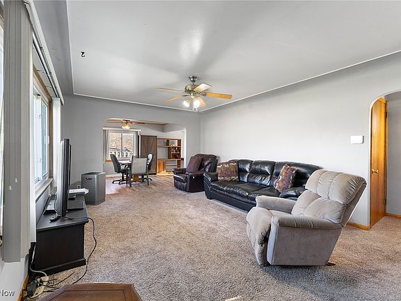 Welcome to 4771 E Webb Rd, a unique residence nestled on almost one acre in Austintown. This spacious home features 5 bedrooms and 2 full bathrooms, offering plenty of room for family, guests, or a home office. As you arrive, a wrap-around driveway greets you, with one branch leading to a detached garage that includes a built-in storage room and attic access, perfect for projects or extra storage. Inside, you’re welcomed by a cozy living room with carpet, flowing seamlessly into the dining room and kitchen. The kitchen is charming and efficient, with wood cabinets, laminate countertops, and vinyl plank flooring, plus a breakfast nook area ideal for a small dining table. Down the hallway, you’ll find two main-level bedrooms, each with generous closet space, plus a full bathroom that features a walk-in shower, vinyl plank flooring, and a comfy vanity. The laundry area with washer and dryer has an exterior exit, handy for busy households. On the upper level, two additional bedrooms await under a vaulted ceiling, highlighted by a stone accent wall, plush carpet, and mini-split A/C. The second full bathroom upstairs also has a walk-in shower (tile walls) and a vanity. There’s also a finished storage room that used to be attic space, great for extra storage, a reading nook, or small workspace. The finished basement adds even more living space: Drywall, vinyl plank flooring, an additional living area, fifth bedroom with closet, and a small storage room or secondary laundry space. Perfect for guests, a rec room, or flexible use. Built with vinyl siding and brick, the house sits under a dimensional shingle roof. Mechanical updates include a high-efficiency furnace, A/C, a 200-amp electrical panel, public water and septic. Located in the Austintown Local School District. This property is a rare find a large lot, generous living space, and lots of thoughtful details. Schedule a showing today to see all it has to offer.