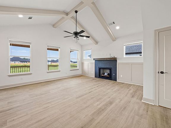 Gas log fireplaceSpa-like experienceWalking trailsWalk-in showerFree-standing bathtubVaulted ceiling with beamsOpen floor plan