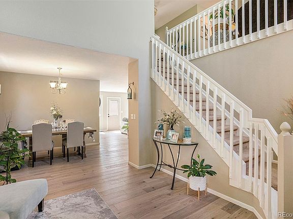 Must see home in the Meadows! You won't be disappointed in this beautiful two story home. Upon entering you are greeted with newly installed engineered hardwood floors throughout the main level. The spacious kitchen hosts granite counters, pantry & eating space by bay windows. Off the kitchen is the living room with a gas fireplace. Main floor laundry room. Upstairs you will find the updated primary suite with a five piece bath and walk in closet. Two additional bedrooms, updated full bath plus a large loft that could easily be converted to a 4th bedroom if needed. The full garden level basement offers you an excellent amount of storage and a blank canvas for all your future finishes. Out back you will find a wonderful deck space that is perfect for entertaining or relaxing along with a professionally landscaped private yard. Bonus views of Castle Rock! The 4th of July fireworks show is outstanding from this deck. Excellent location. Walking distance to school, parks, trails and all that the highly coveted Meadows community has to offer.