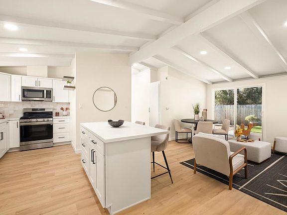 Beautifully renovated home on an oversized canyon lot offering both privacy and stunning natural surroundings. The property backs up to a serene park, creating a peaceful, open feel with no neighbors behind. Inside, the home features open beam vaulted ceilings and a bright, open living space that flows seamlessly throughout. Every detail has been thoughtfully updated, including new electrical and plumbing, new kitchen cabinets and bathroom vanities, new LVP flooring and baseboards, and new countertops in the kitchen and baths. The home also features all new doors, door frames, casings, and closet doors, along with modern light fixtures, ceiling fans, and exterior lighting. Both bathrooms have been beautifully redone with new tile, and the primary suite includes a brand new tub. Freshly painted inside and out, the home also includes new retrofit windows, a new slider, and a stylish new front door. Modern upgrades continue with new mini-split HVAC units, a new tankless water heater, drought-tolerant landscaping, and new stainless steel kitchen appliances. Centrally located with easy freeway access, and just minutes to great shopping and dining, this home perfectly blends modern comfort with natural beauty.