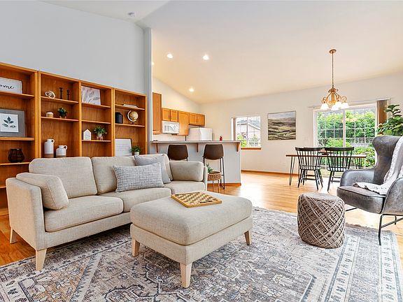 Charming, turn-key rambler in Corona Court, a highly desirable 55+ neighborhood in the heart of Cordata. This open floor plan features vaulted ceilings, oak floors throughout & great natural light. 3 bedrooms, one makes an ideal home office with French doors + 2 full baths. Spacious kitchen with breakfast bar, ample cabinet space & great storage. 2-car attached garage, mature landscaping, backyard patio and partially fenced yard. Nestled on a quiet, non-through street with own community clubhouse where you're sure to enjoy time with friends - old and new! All in a walkable neighborhood close to bus route, parks, trails, shopping, dining & medical services. Welcome home!