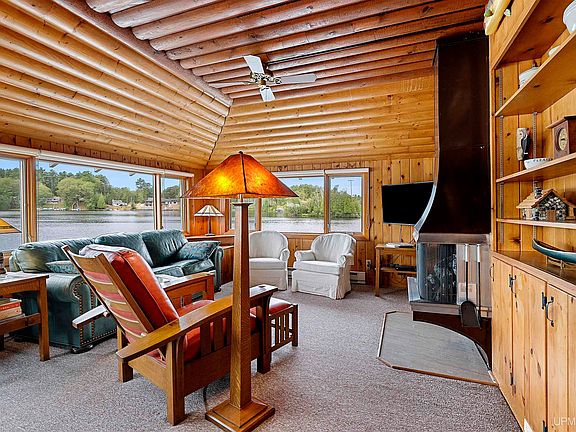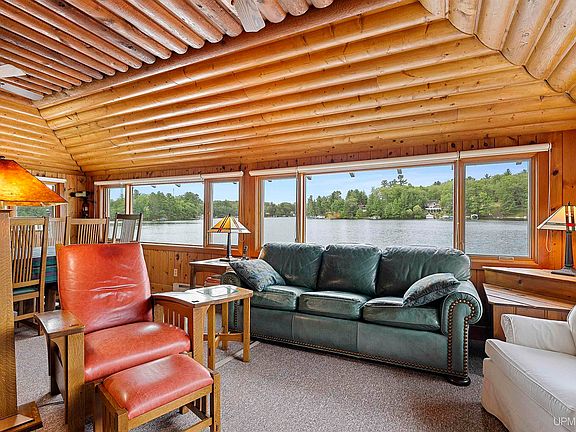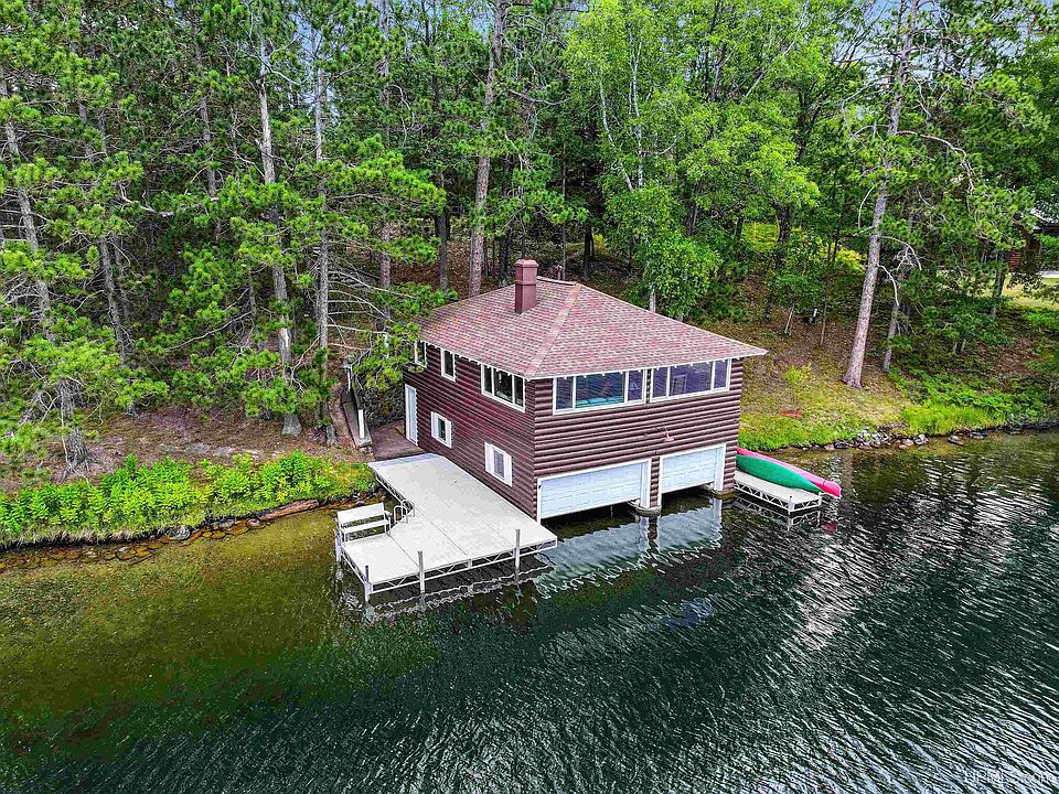 Historic Boathouse Cottage on Bass Lake, Spread Eagle Chain of Lakes! Nestled on the serene shores of the prestigious Bass Lake, part of the coveted Spread Eagle Chain of Lakes, this historic boathouse cottage is a rare gem that you could not build today—a one-in-a-million opportunity. From the moment you step inside, you’ll be enveloped by the tranquility of the surroundings, with panoramic views of the shimmering waters and a gentle slope that leads you to the lake’s edge. A picturesque walkway, bordered by fieldstone walls and brick pavers, guides you to a sprawling 1,500 sq. ft. dock, where you’ll find direct access to a pristine sandy beach. See if you can spot the embedded watch in the stone walls! The interior of the cottage is a masterpiece of craftsmanship, featuring stunning log and knotty pine finishes, vaulted ceilings, and an open-concept design. Every window frames breathtaking vistas, inviting nature into every corner of this charming retreat. The living room is a cozy haven, complete with a natural gas fireplace that adds warmth and ambiance to cool evenings by the lake. Whether you’re a water enthusiast or simply seeking a peaceful escape, this property offers it all. Listen to the soothing sounds of the waves lapping against the shore, hear the loons call, and watch as boats drift lazily by while the rest of the world rushes on. Cast a line right off the dock, or explore the lake by kayak, aqua cycle, or canoe—all included with the property. The boathouse features two-boat slips, while the tastefully updated bathroom and gracious foyer ensure your guests are greeted in style. This property is not just a home; it’s an experience—a rare opportunity to own a piece of history in excellent condition, with thoughtful updates that blend modern comforts with timeless charm. Set amidst partial woods for added privacy, this retreat also includes a shed for extra storage. Don’t miss your chance to own this secluded haven where nature’s beauty and tranquility reign supreme. Fully furnished home includes Stickley furniture- see associated documents for all items. All offers to be delivered to listing agent by August 16th, 2024 at 5 pm. Seller will review offers on August 17, 2024. Survey is currently being done- frontage & lot size is approx.