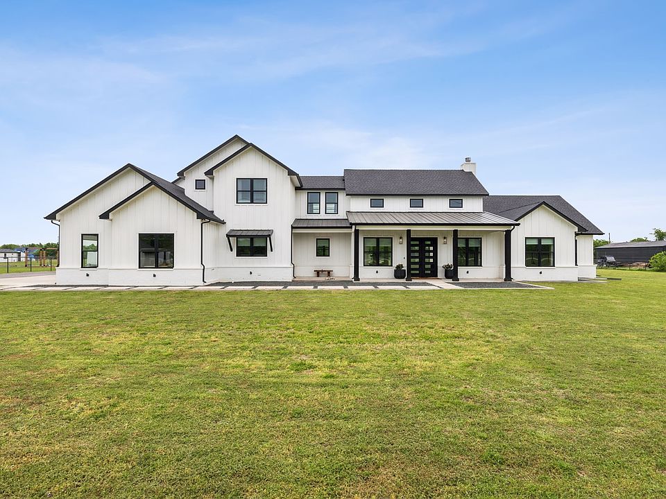 This property is more than just a home — it’s a lifestyle. It offers the rare combination of modern finishes and flexibility for acreage living. With top-tier appliances, premium surfaces, and architectural volume, the interior delights while the land invites endless possibilities: think horses, a pool, even a home farm Set in the prestigious Argyle ISD and just minutes away from Liberty Christian, offering luxury, privacy, and space — all with no city taxes on nearly 3 acres. This 2021-built estate was recently appraised at $1,840,000, offering exceptional value and equity for buyers. Step inside to soaring ceilings, walls of windows, and a flowing open-concept layout that perfectly balances elegance and comfort. The gourmet kitchen boasts Taj Mahal quartzite countertops, premium KitchenAid appliances, a massive island, and a walk-in pantry — ideal for everyday living or entertaining in style. The primary suite on the main level features dual vanities, a spa-inspired bath, and an expansive walk-in closet. Upstairs, three ensuite bedrooms and a flexible media or study room provide ample space for family and guests. Outdoors, enjoy an expansive covered patio overlooking your private acreage — fully fenced and ready for your custom outdoor oasis. A gated entry, 3-car garage, and timeless farmhouse architecture complete the picture. Located minutes from shopping, and major highways, this home offers the perfect blend of rural tranquility and urban convenience. Whether you're craving a quiet country backdrop or elegant entertaining spaces, this home delivers both. Don’t miss this opportunity — schedule your private showing today.