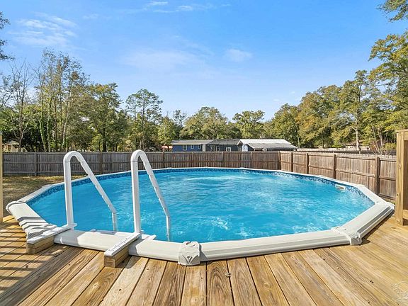 Welcome to this Charming 3 bedroom, 2 bath home nestled in a quiet and peaceful area. With a split floor plan, this all brick home offers a comfortable and inviting space for family living. The 2 car garage provides ample parking and storage. As you enter the home, you'll be drawn to the custom built natural Maple cabinetry with crown molding in the kitchen/dining combo. Stainless appliances, a glass top easy clean radiant range, built-in vented microwave hood, and built-in quiet dishwasher make meal preparation a breeze. The spacious Master Bedroom boasts a private bathroom and a walk-in closet with vented shelving. The open family room with its 10' ceiling creates a sense of grandeur and provides a perfect gathering space. Energy efficient features such as vented soffit, double pane vinyl tilt sash windows with low e glass, and ceiling fans ensure year-round comfort. The home also includes hurricane protection, an 8" deep stainless kitchen sink, designer lighting package, raised bar, Cat 5 wiring, six-panel interior doors, and a 10' step ceiling in the great room. This home is a gem, maintained by its original owner and built in 2020. The recently installed above ground pool with deck adds a touch of luxury and 6' wood privacy fence, offering seclusion for outdoor enjoyment. Don't miss the opportunity to make this great home your own.