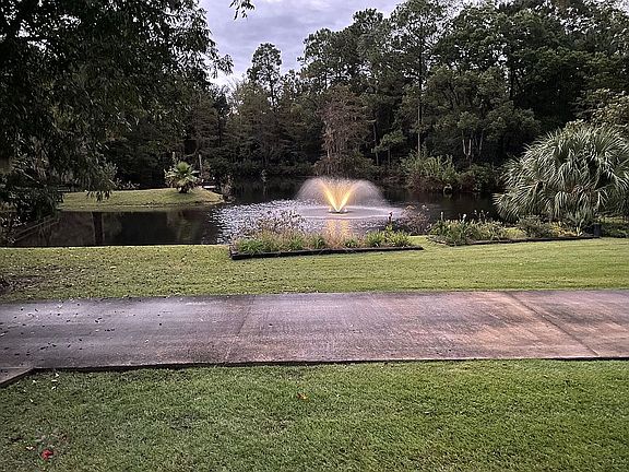 Country French with century-old old brick; antique heart pine flooring; library; approximately 4,000 sq ft UNDER ROOF, which includes Lshaped covered porches. Ver large master suite with a walk-in and a cedar closet. Sits on scenic 2+ acre cypress fishing pond. Approximately 5 acres in mature, producing pecan trees. Separate 1 bedroom, 1 bath with living room guest cottage overlooking pond and fountain