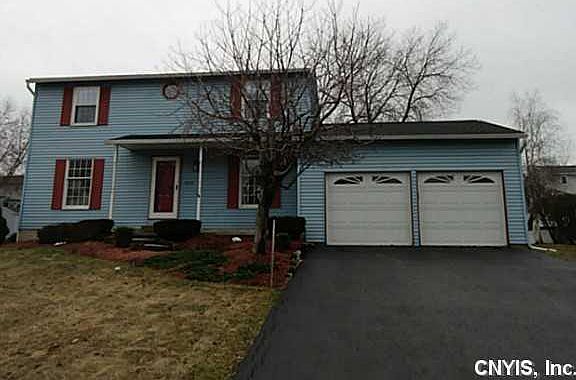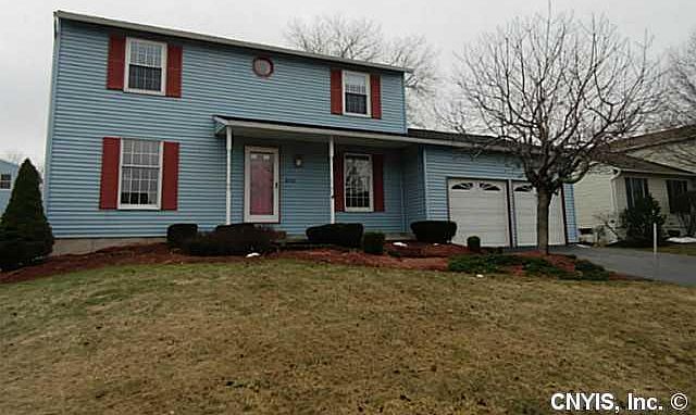 Lovingly maintained three bedroom Colonial features neutral decor throughout. Beautiful hardwood floors, upstairs carpeting, six panel doors, and fresh interior paint. Lower level has been partialy finished and adds extra living space with family room/rec room. Kitchen with pantry storage opens to the living room and formal dining room. Exit the slider in kitchen onto the deck overlooking the large back yard and above ground pool. Large stamped concrete patio with firepit leads to the yard from the garage, completing an outdoor oasis. Convenient location- close to YMCA, Clay Central Park, schools, and more!