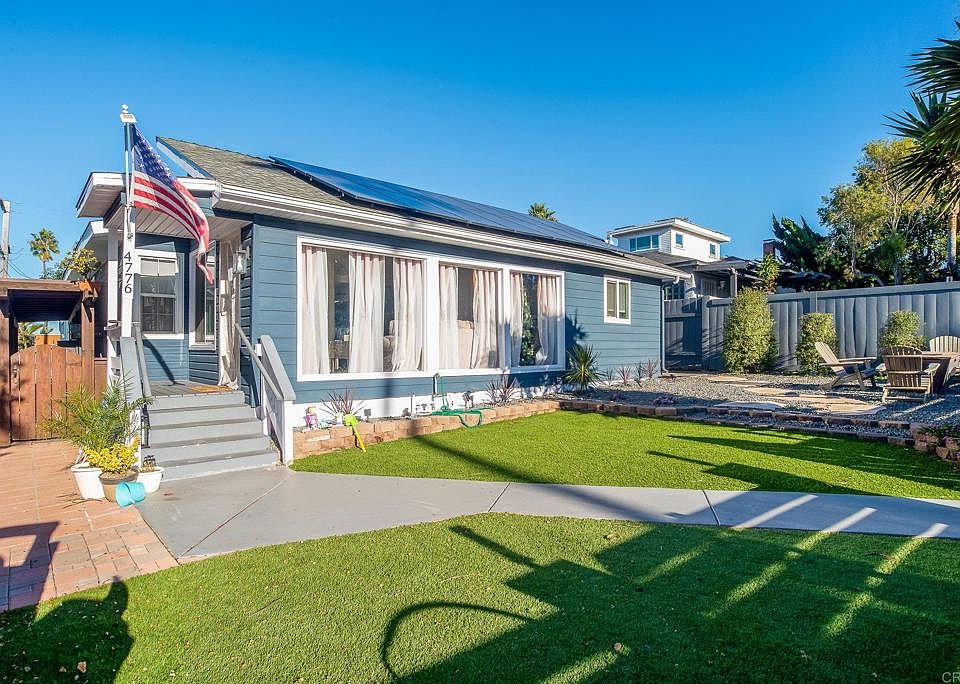 Fantastic opportunity to own two separate homes on a 6983 sq ft lot in the heart of Ocean Beach. Charming single-story front home offers a recently remodeled 3 bedrooms/2 baths, central heat and air, paid solar, laundry room, deck off of dining area, and spacious front and back yards with pristine artificial turf for friends, family, and fun. Back unit retreat is beautifully upgraded consisting of 2 bedrooms/2 baths atop 3 car garages with an extra off-street alley parking spot, peek views, en suite, separate laundry shed with additional storage, expansive deck, and huge secluded yard with fruit tree are perfect for relaxing or entertaining. This coastal treasure with private entrances and dedicated yards create exceptional flexibility for investors, owner-occupants, multi-generational households, vacation rentals, or potential ADU development. Walk to the beach, Sunset Cliffs, OB pier, and a vibrant mix of restaurants, bars, and coffee shops.