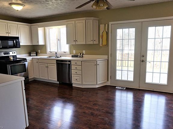 This is a fantastic ranch home with an open and inviting first floor living space. Situated on 2.3 acres, this 1,700 sqft 3 bedroom, 2 bath home has a full basement, natural gas heat and many updates inside and out. The heart of the home is a generous eat in kitchen with plenty of cabinetry and counter space that openly flows into a family room area with fireplace. There are three accommodating bedrooms which includes a master suite and bath with full size tub/shower and skylight. The additional full bath has been recently updated with tile floors, surround, and new vanity with granite. Large first floor utility/mudroom space with additional cabinetry for storage is conveniently located off the attached garage. The two car garage is finished and heated with plenty room for workspace. Additional updates include new flooring throughout, recessed lighting, deck and concrete patio area(2016), furnace and A/C (2014), energy efficient siding with oversized garage door (2015) and many more. This home has fresh neutral décor and is well cared for. It's Central location off SR422 makes for great accessibility to both Youngstown and Cleveland areas.