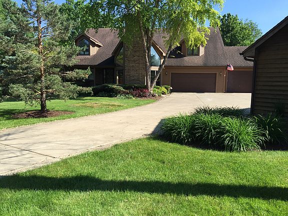 Contempirary home with an open layout. Three car attached garage. Three car detached, heated garage with attic storage. Small out building for yard equipment, fire wood, pool supplies.