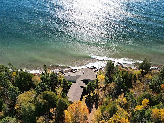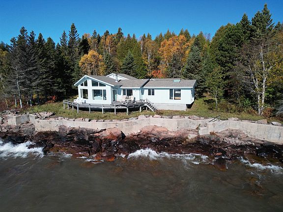 Lutsen, Lake Superior opportunity so close to the lake that November’s Boomers pulse in the feet and chest! Fixed firmly to the ancient rock, this home is situated such that the elemental wonder of The Big Lake is on constant display. Each room is sky and water filled via the large windows. The liquid-audio is as varied as the changing light. Waves from the far side of the lake roller-coaster up the rocks, quiet lapping days tap about the stone, ice comes and goes chiming in thin sheets and like a train passing when thicker slabs are shoved this way and that. View it all from this three-bedroom home, 2 baths, attached garage. A full acre. Living room is THE place to gather and take a long look to the horizon – an amazing bank of windows overseeing the grandeur. Wood burning fireplace. Tiled floors and warm paneling throughout. A deck stretches along the front of the home. Barbecuing there infuses the grillables with a freshwater juiciness hard to describe. Hanging with friends and family here is enriching and invigorating. Cuddling that special someone under a blanket on that deck, ooh lah lah, just doesn’t get better. Brave a big-wave day in your raingear to be misted in the purity of the world’s largest freshwater lake! Current owners have everything in good order. A Seawall for the ages stands guard when Gitche Gummee is feeling sassy. It goes all the way along the 150 feet of frontage. Roof has lots of life left. Siding is solid. Septic mound and well know their roles. Inside is toasty and well secured against the wild ways of this Northwoods setting. 2 car attached garage is handy when it’s 10 below and a lake-effect blizzard creates your own private snow-globe. The land has been kept in pristine boreal beauty. A dreamy cedar forest is scented, still and shady. Lupines dress the place in early summer. Birch are gorgeous in the fall. Back inside the layout is thoughtfully arranged creating peaceful bedrooms, privacy and a central gathering place with spacious kitchen for cooking it up! Ski Lutsen Mts, hit the links at Superior National Golf Course, head inland to a lake-land wilderness awaiting exploration. Grand Marais is just down the road. Staying put is a good idea, too: read a book, make a blueberry pie, dare to take a swim! Let The Lake work its magic: breathe, listen, reflect, open to all that beautiful water… Uffda, you won’t ever be the same!