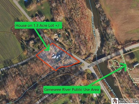 Welcome to 4777 Back River Road! As the address indicates, it sits within a stones throw away from the recreational waters of the Genesee River ( public launch area is just over the bridge). This 2 bed 1 bath home sits on a 1.3 Acre lot up out of the 100 and 500 year flood zones, and is located in a country setting within the Genesee Valley School district. It is 1311 sq. ft. in size, and has updated vinyl siding and metal roofing. There’s a full basement with an additional finished room that’s currently being used for crafting etc. It could be transformed into a home office/gaming space or even an extra bedroom. The ground floor is covered mostly in hardwood flooring and vinyl. It has a farmhouse type kitchen, formal dining room, full bathroom, and living room with a supplemental fireplace. The primary heat source is natural gas forced air. Upstairs are the two bedrooms with nice sized closets. The detached garage is adequately sized with electric and an overhead door. Its cinderblock walls and concrete slab construction provide an extra workshop area and protection from the elements. There is also a 12x21’ carport off the back of the garage for more storage. Perfect starter home!