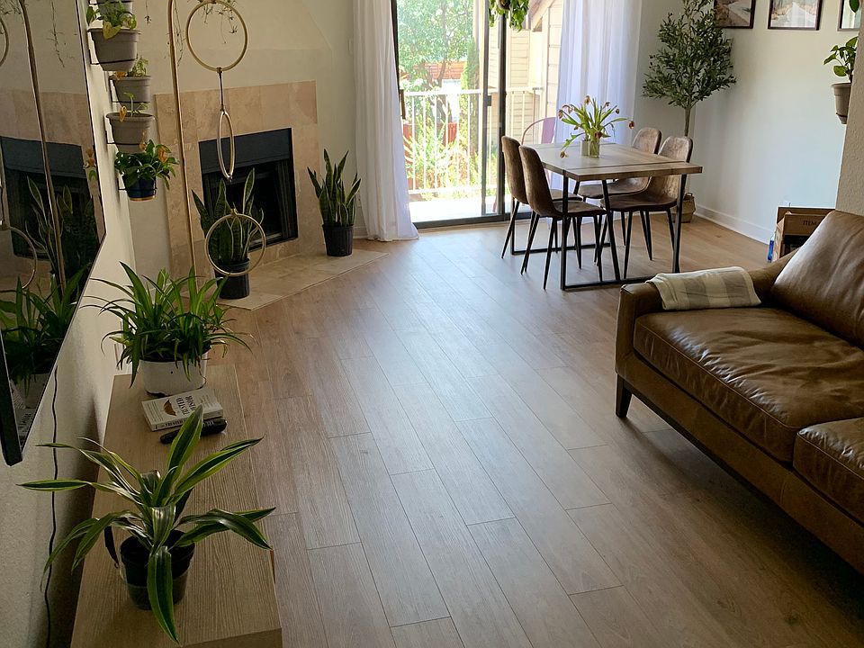 Furnished property with supplied kitchen items Second bedroom is flexble use with queen murphy bed! The beautiful 2 story condo has a full bathroom that's just across the hall from this room and a half bath downstairs. Enjoy the spacious kitchen, full sized washer dryer, 75" TV and bright patio. The apartment also has 1 shared covered garage space available and many unreserved open spaces.
