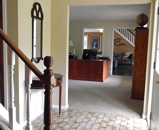 Great colonial with country setting - on approximately 2.87 acres. Oak kitchen with eating area opens to fireplaced family room. All brick fireplace with heart - kitchen with french doors to stone patio, leads to pool and tree line backyard. 2 story Great room with walnut stained wood floors and back staircase that leads to loft and additional 2 rooms that could be bedrooms. Freshly painted master with walk in closet and claw foot tub.