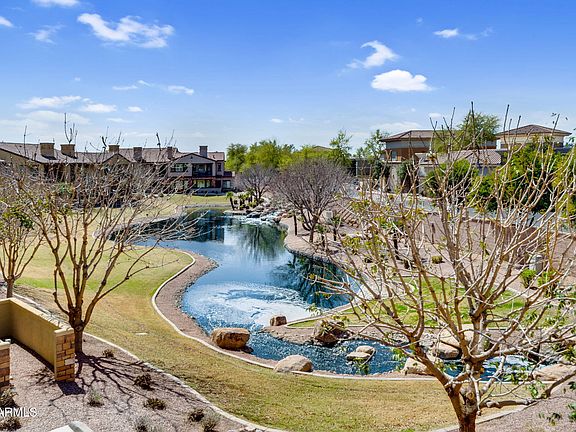 Behind the gates in one of Chandler's most exclusive and sought-after neighborhoods at Fulton Ranch, this exceptional condo at Serenity Shores offers the perfect blend of luxury, convenience, and security in a resort-style setting. Designed for a lock-and-leave lifestyle, this low-maintenance home is ideal for those seeking an upscale living experience with breathtaking waterfront views. Step inside to discover a bright and airy kitchen, a chef's dream featuring premium GE Monogram stainless steel appliances, expansive countertops, ample cabinetry, and a spacious breakfast bar island, perfect for both casual dining and entertaining. The split master suite is a private retreat, boasting a generous layout, dual sinks, a separate soaking tub, and a walk-in shower, creating a spa-like ambiance. A custom-built walk-in closet ensures optimal organization, while the additional bedrooms also feature built-in closet systems for added storage.