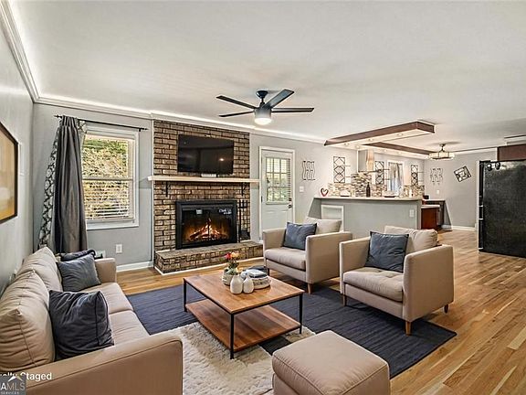 Welcome to this beautifully updated 4-sided brick ranch on a corner lot in a quiet neighborhood, just minutes from the I-85 interstate, I-285 & Lilburn. This spacious 4-bedroom, 3-bath home offers endless versatility! Owners suite is on the main level with a private bath, customized with a frameless shower door, custom tiled shower and equipped with body sprays and overhead shower head! The main floor features an open concept with beautiful original oak wood flooring, a spacious family room open to the updated kitchen, plus separate dining for additional gathering space. The kitchen is well designed with plenty of cabinet space including a butler pantry with additional upright freezer and undercounter refrigerator & storage; generous solid-surface counters, and modern appliances, making it both functional and inviting. Also this homes boasts a full-size laundry room on the main with overhead cabinetry for your convenience. The basement level has large recreation area, ideal for a fitness center or entertainment space! The basement also boasts a large storage room, full bath with a shower, and a 4th bedroom with an opportunity to expand the closet to a walk-in space or use this room as a large art room or crafting space! Giving flexibility for guests, extended family, or a private retreat. It also offers quick access to the fenced backyard and pool area. Outdoors, enjoy a level fenced backyard with lighting all around the fence, patio steps, pool deck and cabana area. The covered cabana features ceiling fans and surround sound capability and overlooks the inviting in-ground pool. This retreat is perfect for entertaining, relaxing, or simply enjoying time at home. The backyard storage shed, enclosed parking and additional storage are an added bonus. Recent updates include a newer roof & covered gutters (2024), HVAC, and gas water heater, new fence, solar heating cover for the pool (2025) and camera/security system, giving peace of mind for years to come. This home has space for everyone and a layout that works for today's lifestyle. Welcome home!