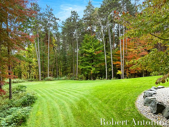 Nestled on almost three and a half private wooded acres in the heart of Rockford, this exceptional residence seamlessly blends timeless craftsmanship with modern luxury. With five spacious bedrooms, two of which are currently being used as a home gym and an office, three and a half baths, and a thoughtful floor plan designed for both everyday living and entertaining, this home offers the perfect balance of comfort, elegance, and functionality. Step inside to discover a series of meticulous renovations and custom upgrades spanning every corner of the home. The gracious foyer opens to a beautifully reimagined great room (renovated 2009) featuring steel beam construction, a striking fireplace, and a built-in surround sound AV system. The formal dining room and mudroom were redesigned with classic architectural details and rich finishes (2010), while the upper-level loft and bonus room provide flexible spaces for family living. The chef's kitchen underwent a full transformation in 2013, showcasing premium appliances, an expanded pantry, and laundry area, plus convenient access to the serene backyard. The primary suite, completely renovated in 2008 and enhanced again in 2012, exudes luxury with its coffered ceiling, custom closets, spa-like bath, and upgraded insulation for year-round comfort. Additional bedrooms and baths feature refined finishes and updated fixtures, ensuring modern appeal throughout. The lower level, fully renovated in 2015, offers an inviting retreat with raised ceilings, a kitchenette with appliances, full bath, and walk-out access to the scenic yardperfect for guests, entertaining, or extended family. A home office, private gym, and abundant storage add to the versatility of the home. Outside, every detail has been considered. Extensive landscaping with bluestone walkways and a rear patio, a maintenance-free deck (2022), and custom brick pillars with a newly paved driveway create a stunning first impression. Architectural enhancements include dormers, brick front elevation, a copper-roof bay window, and three handcrafted solid-wood garage doors. A dual-zone furnace system (2015) ensures efficiency and comfort year-round.