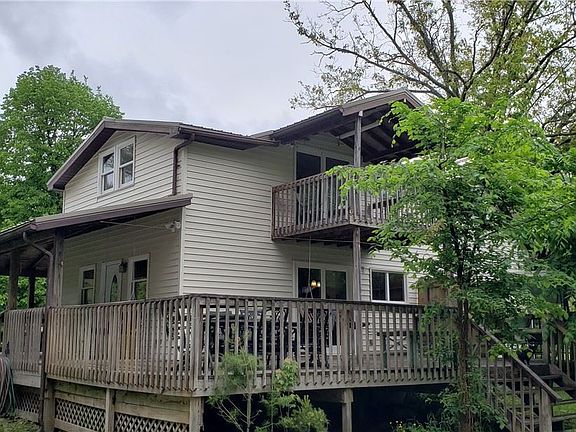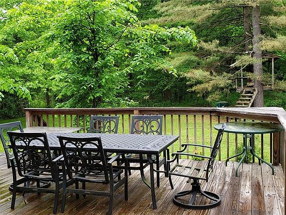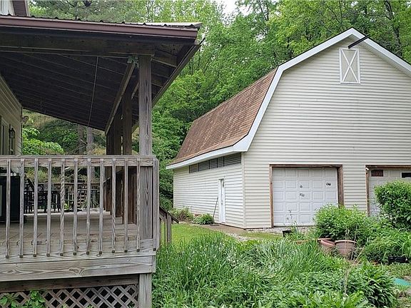 Renovated rustic country home, fully remodeled with newer metal roof, HVAC, kitchen, and 2 baths within the last 6 years. The Living room is large with a lot of windows a a free-standing wood burning fireplace on a brick hearth. It has 3 bedrooms: 2 small and charming and 1 large master with attached full bathroom and a balcony overlooking the back woods. The kitchen is spacious with new cabinets, quartz countertop, and stainless-steel appliances included. Several windows are newly installed including a sliding glass door. The mudroom/laundry room has a washer and dryer. Next to the home and included is a large barn (30'x48') with loft, 2 garage doors, 2 service doors, concrete floor, and automotive lift. A water spigot is at the rear door of barn for water access. This is a nice private yard with many native perennial flowers around if someone is interested in gardening. Wood shed & shed/chicken coop behind the barn/garage.