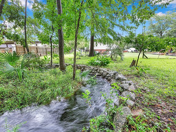 Before entering the property you are met with a large brick porch meant for enjoying the outdoor living and listening to the creek flowing at the rear of the property. Entering the home, a large living area greets you to the right and a dining room (currently used as a personal gym) is found to your left. The gem of the home is the remodeled kitchen with butcher block counters, a great mix of open shelving and cabinetry and a bar area for dining pleasure. With three bedrooms and one bath at the rear of the house, and a primary suite and bath at the other end, there is plenty of space to spread out and enjoy both the lot and the home. Call today to make your showing.